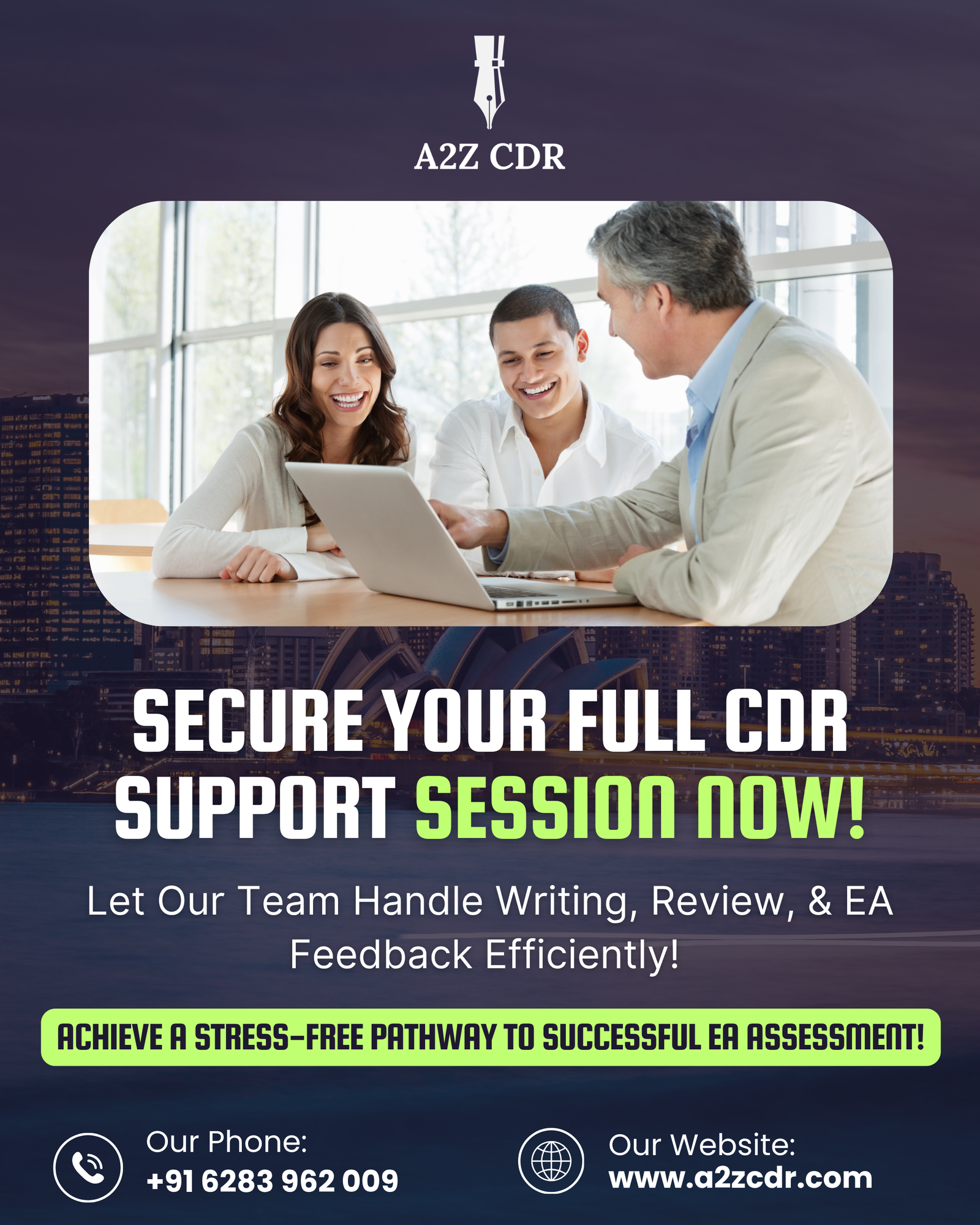 Writing an effective CDR requires precision, technical accuracy, and compliance with EA’s guidelines. If you’re unsure how to structure your CDR or need expert guidance, A2Z CDR Writing Services can help.